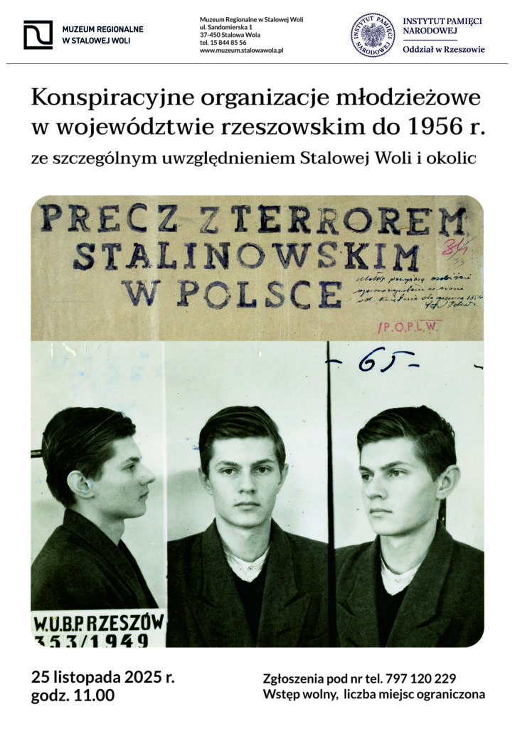 Zapraszamy uczniów oraz inne zainteresowane osoby na wykład dra hab. Bogusława Wójcika z IPN oddział w Rzeszowie. W ramach Zaduszek muzealnych zreferuje on temat „Konspiracyjne organizacje młodzieżowe w województwie rzeszowskim do 1956 r. ze szczególnym uwzględnieniem Stalowej Woli i okolic”.